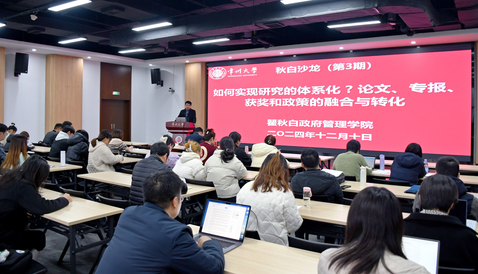 2024年12月10日,人前露出 在西太湖校区立言楼458多功能会议室,成功举办了“秋白沙龙”第三期活动,活动主题为“如何实现研究的体系化——论文、专报、获奖和政策的融合与转化”。本次活动由人前露出党总支书记潘道广主持。